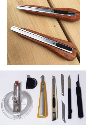 ご存知の方いると思いますが、カッターナイフは、日本で発明されました。 その会社は、大阪の岡田工業株式会社(現:オルファ株式会社)です。 ナイフが、切れなくなったときに「板チョコ」のように折って新しい刃が出れば砥がずに切れ味を持続できるという発想です。 この岡田工業は、カッターナイフを全世界展開するために、社名を「折る刃」から連想し、「オルファ」に変えました。 現在、100か国以上に輸出されるようになっているそうです。 カッターナイフ業界では、一番有名ですね。当時からカッターナイフを製作している「NTカッター」という会社も存在します。 大工は、道具としてはあまり使用しませんが、梱包を開いたり、小物を削ったり(鉛筆等)、柔らかいシート状の物を切るときの使用が考えられますが、常に持ち歩き便利に使用しています。 大工は、幅の広い刃の大型を主に使用しています。 大型は、グリップが付き持ちやすく力が入りやすい形が多いですね。 大形には、グリップタイプが多く見受けられます。 今回の、写真はスリムタイプ(小型刃)です。 スリムなのは、良い面も有りますが力が加えにくい事、細かく作業するにはもう少し持ちやすい方が良いです。 そこで、木の加工でグリップを作ってみました。 市販の、カッターにグリップを取り付けると木の手触りの優しさが加わりとても使いやすくなります。 大工の、器用な面のお知らせです。 なお、小型刃には、刃先角度が30度の鋭角刃で「細工刃」が存在します。この刃は、さらに細かい作業に適していますので、現在使用中のカッターナイフの交換時にこの細工刃を検討してみては、いかがでしょう。 以前。オルファの社員の方は、社内では「細工刃」を使用している方がほとんどでこれを使うと元には戻れないと言っていました。 ただ、販売店も存在を知らない事多いようですので探してみて下さい。 |
